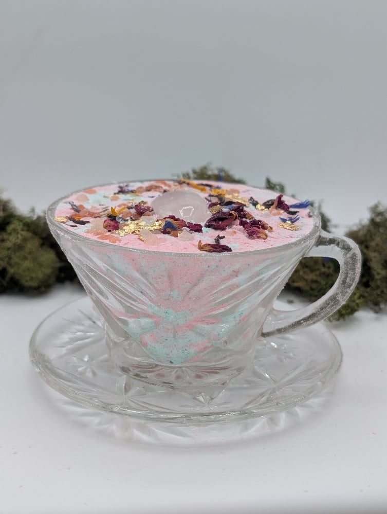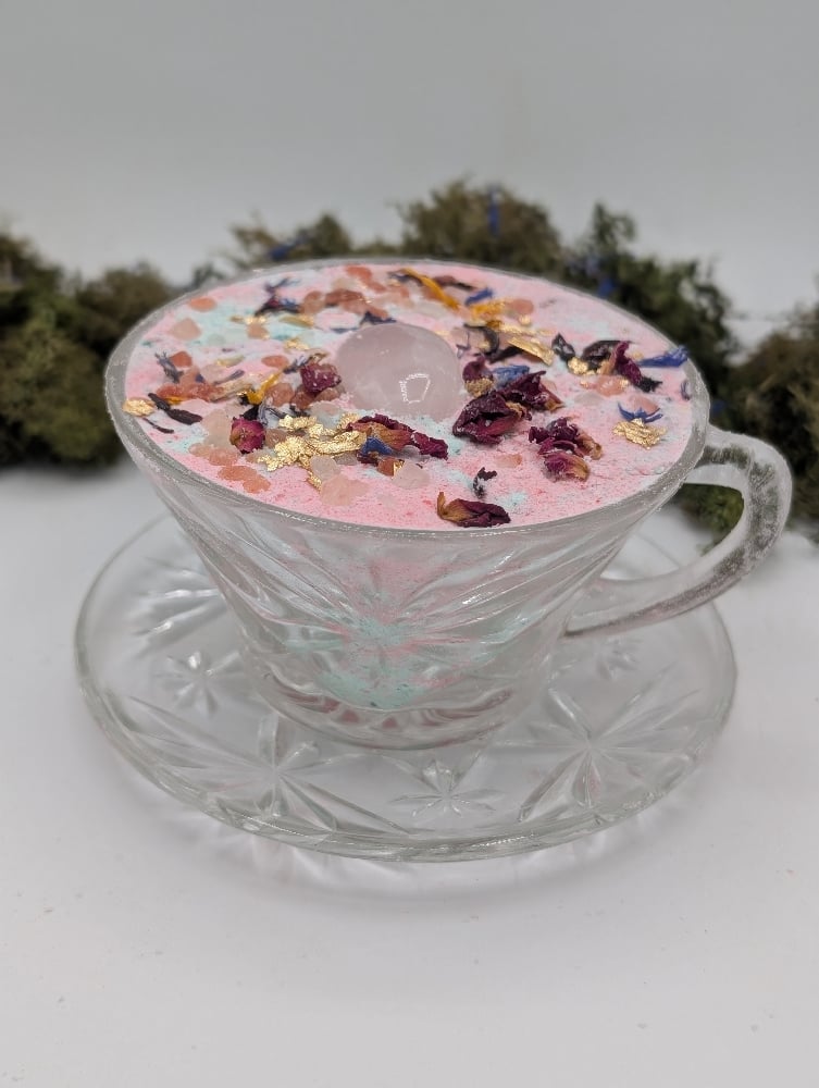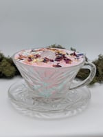 A perfect way to unwind after a long day or gift to a special friend. This vintage tea cup that was created with intentions and is intended to be used as a meditation tool. Blended with Rose, Jasmine and Grapefruit to relax and soothe your mind. Infused with approx. 200mg of CBD/CBG.